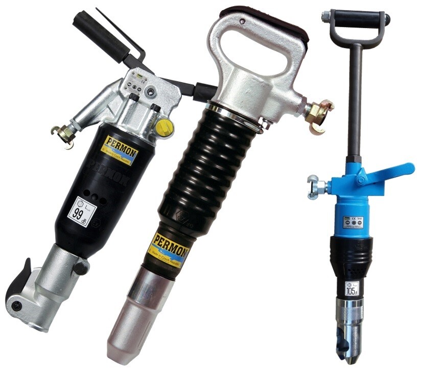 Ruční pneumatické nářadí pro demoliční, vrtací a stavební práce.